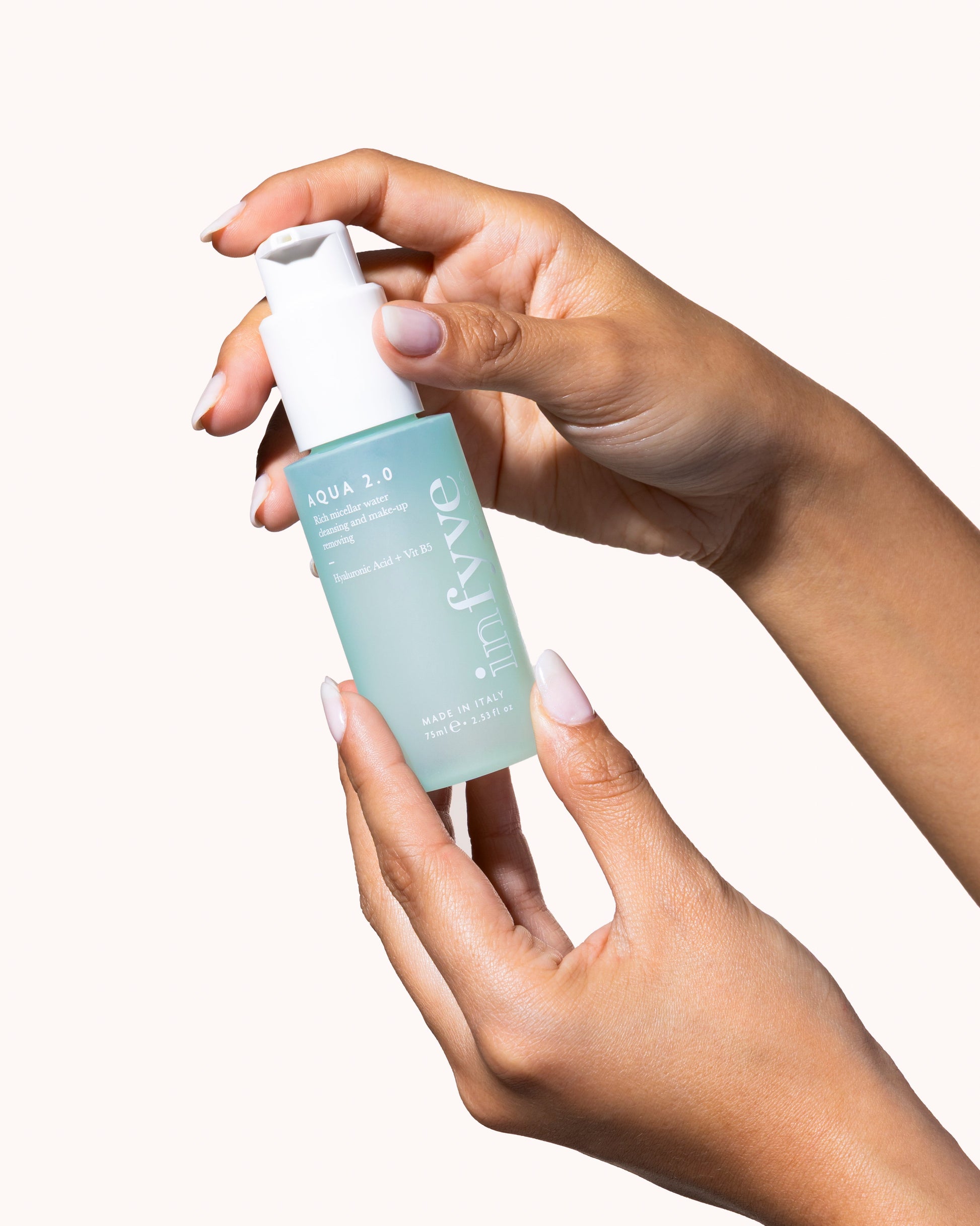 AQUA 2.0 scioglie il trucco ed elimina le impurità senza irritare gli occhi e la pelle.