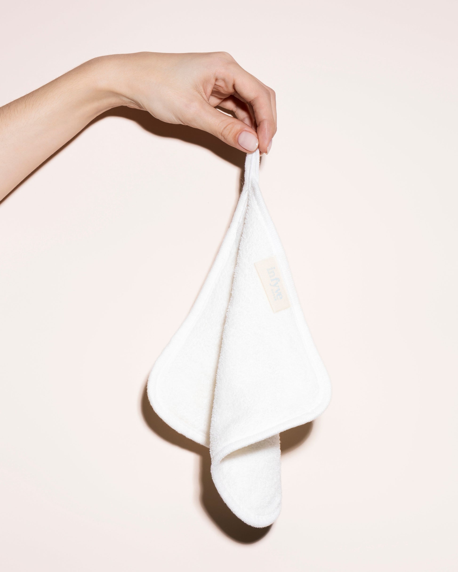 Rimuove delicatamente impurità e make-up, grazie al suo tessuto soffice e avvolgente