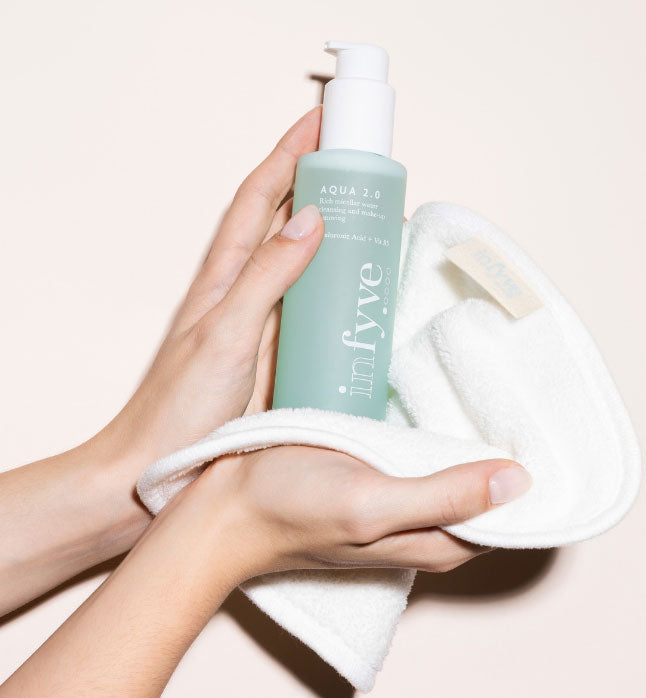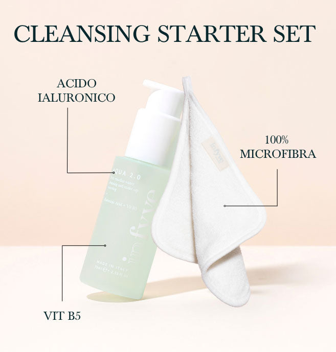 Duo essenziale per la detersione con detergente delicato e panno struccante